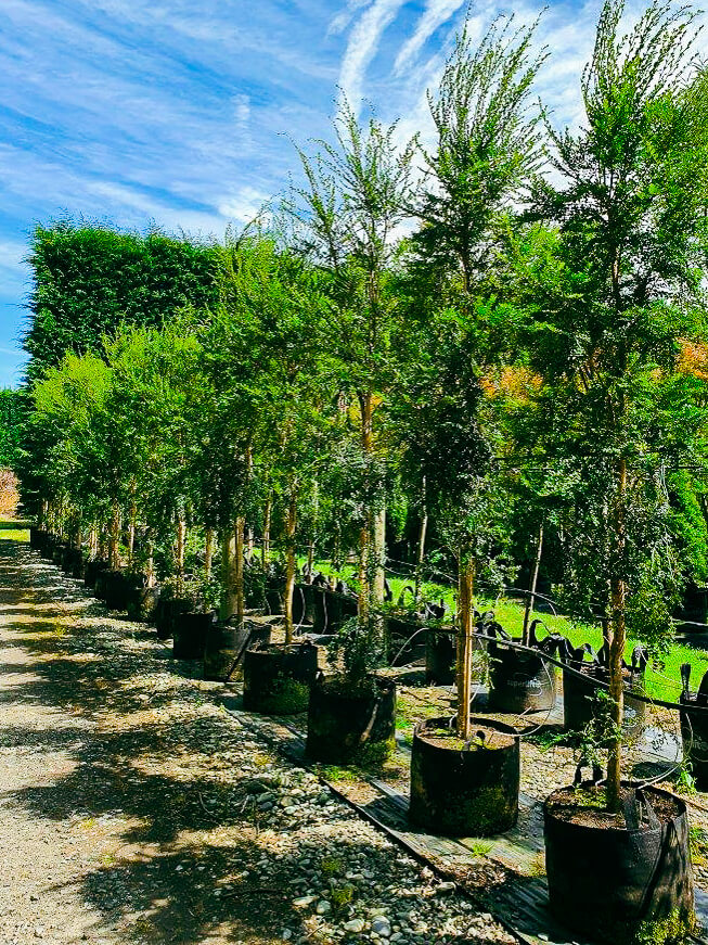 Azara is a graceful tree with shiny dark green rounded leaves very similar to our native beech, set against a light creamy coloured stem and truck providing good contrast.