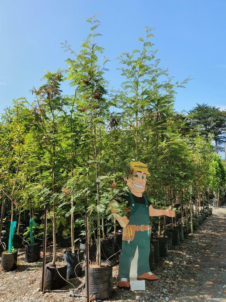 An upright and orderly tree, the pinnate leaves are gloriously arranged to fully showcase their changing colours. Dark green in summer, they move into a brilliant red, then orange and golden as Autumn progresses. Clusters of small, creamy white berries appear in late summer and turn gold in Autumn, hanging on into winter. Deceptively hardy, it will grow to 3 – 4 metres.